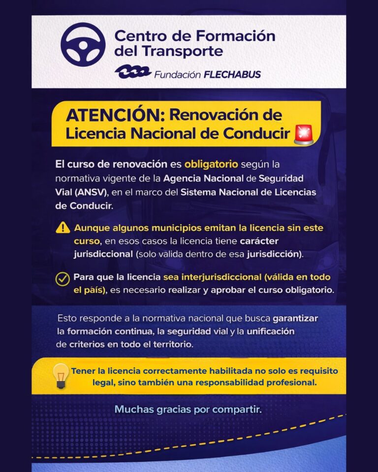 En el marco del sistema actual de seguridad vial en Argentina, es importante recordar que la renovación de la Licencia Nacional de Conducir requiere la realización y aprobación de un curso obligatorio, conforme a la normativa vigente establecida por la Agencia Nacional de Seguridad Vial (ANSV), dentro del Sistema Nacional de Licencias de Conducir.