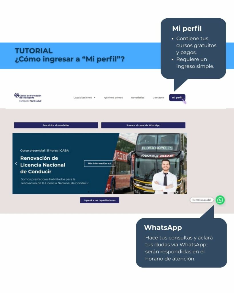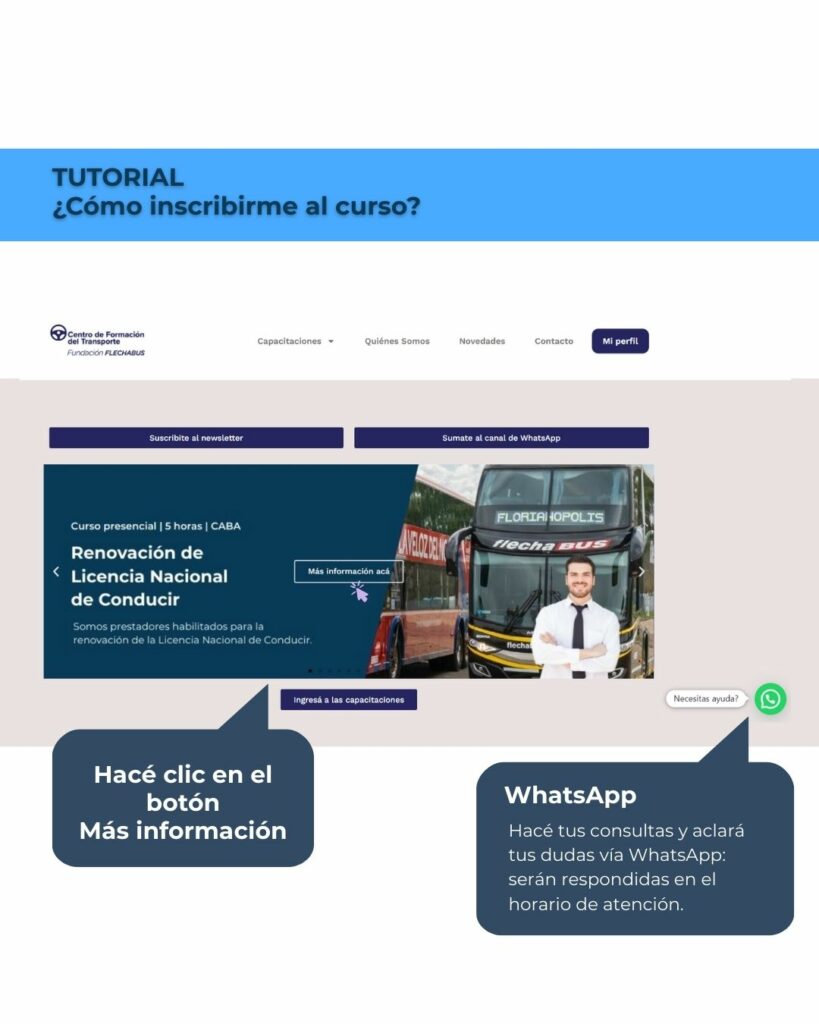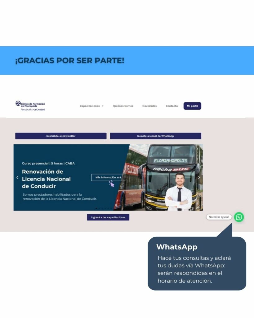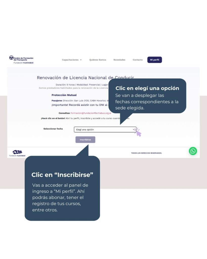 El Centro de Formación del Transporte de la Fundación Flechabus es un prestador habilitado para la renovación de la Licencia Nacional de Conducir, en este tutorial encontrarás paso a paso cómo podés inscribirte usando la plataforma.