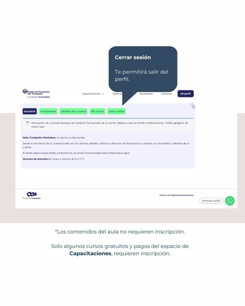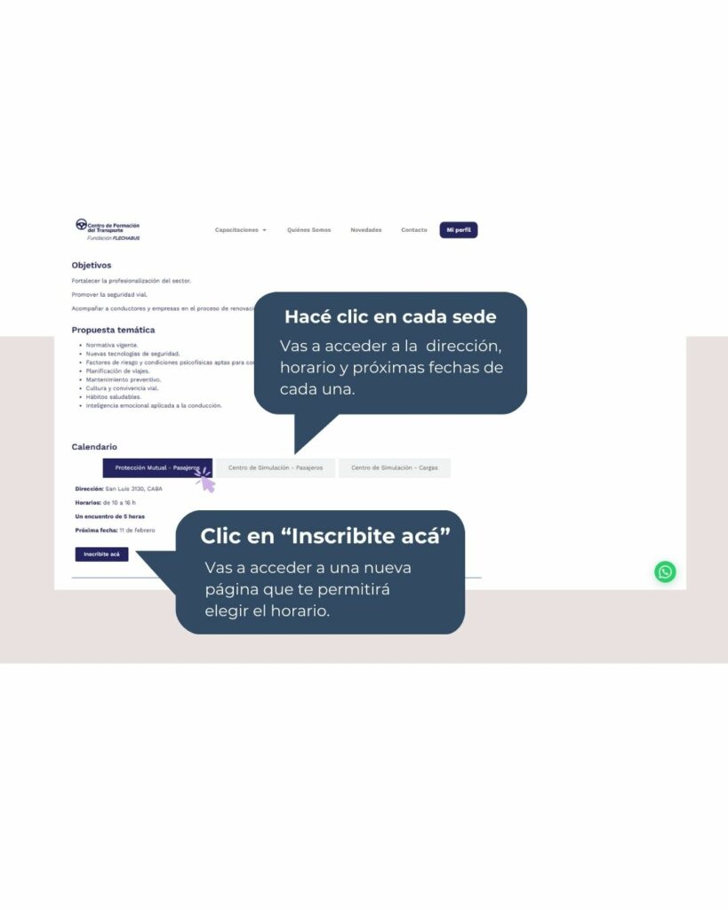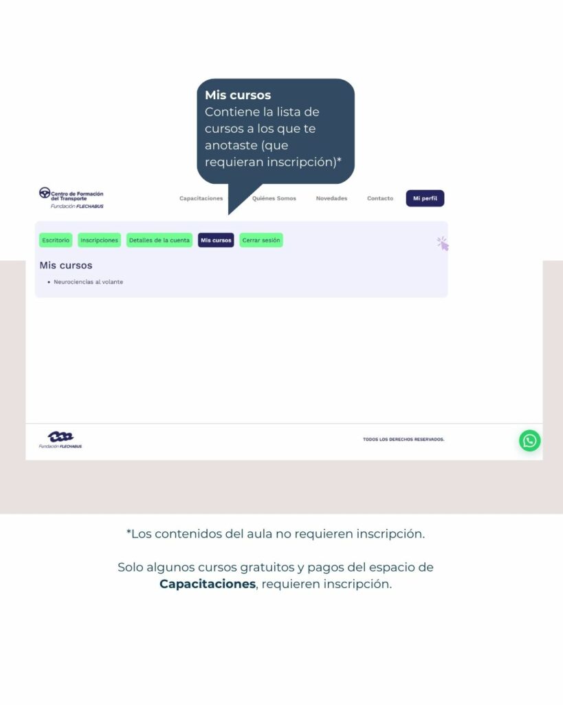 El Centro de Formación del Transporte de la Fundación Flechabus ofrece un espacio para que puedas inscribirte y manejar el control de los cursos de profesionalización pagos y gratuitos.